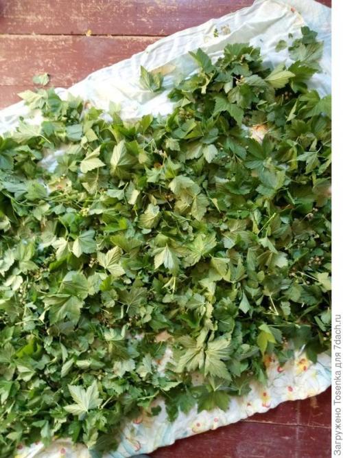 Свежесобранные смородиновые листики подвяливают — это облегчит процесс разрушения хлорофилла. В результате в тканях накапливаются эфирные масла и появляется характерный цвет и аромат.