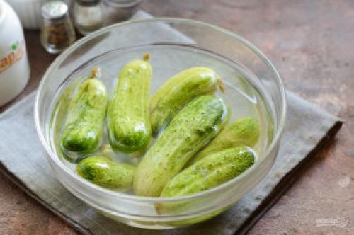 - Вымачивайте огурцы не менее 5 часов, затем промойте под холодной проточной водой, удалите все загрязнения.